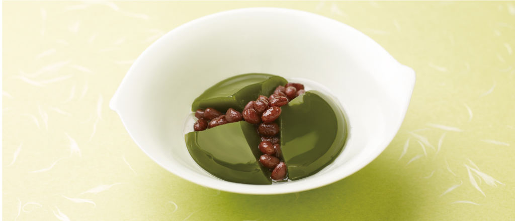 本葛のなめらかさの中で深く濃く抹茶が香る濃茶葛と北海道産小豆の風味が交わります濃茶の苦さと小豆の甘さが大人の舌をうならせます抹茶は宇治 丸久小山園の石臼挽き抹茶を使用しております