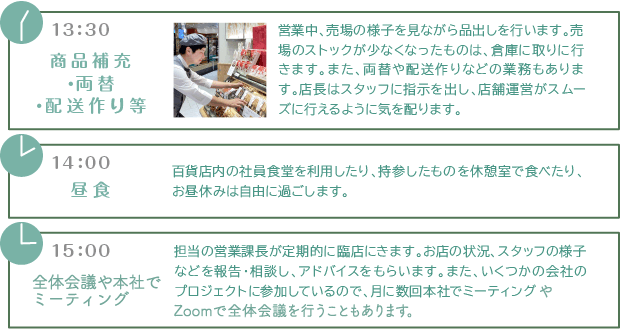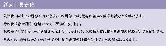 勤務地 | 本社、首都圏の有名百貨店・駅ビルなどの当社店舗 |